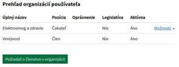 Vo svojom profile choďte úplne naspodok, nájdete tam Prehľad organizácií používateľa. Podajte Žiadosť o členstvo v organizácii Elektrosmog a zdravie.